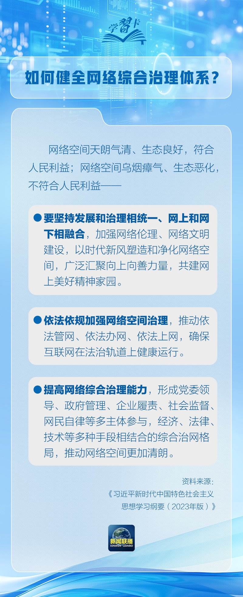 習近平總書記在《關(guān)于〈中共中央關(guān)于進一步全面深化改革、推進中國式現(xiàn)代化的決定〉的說明》中強調(diào)要健全網(wǎng)絡綜合治理體系。