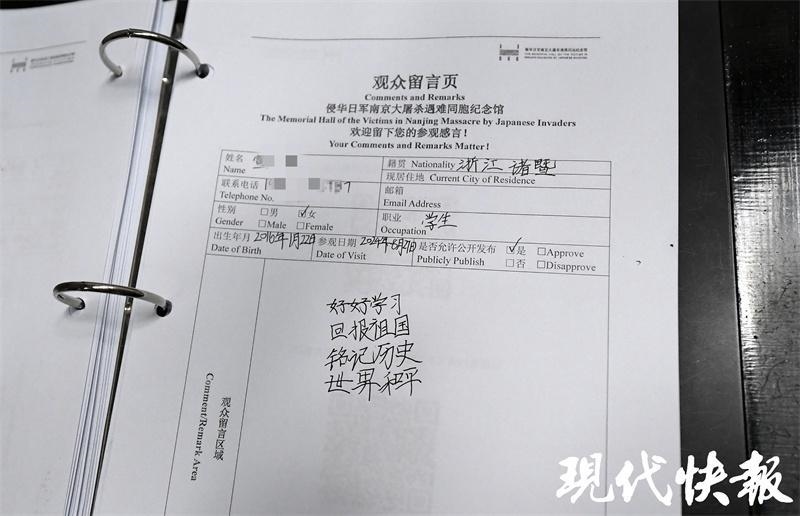 在侵華日軍南京大屠殺遇難同胞紀(jì)念館留言簿上,孩子們用稚嫩的筆跡留下一句句和平心聲