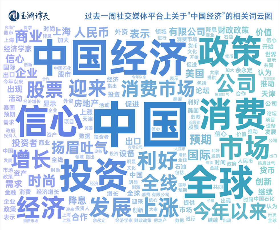 譚主對過去一周社交媒體平臺上“中國經(jīng)濟”相關(guān)的討論進行大數(shù)據(jù)分析,得到了這樣一張圖。