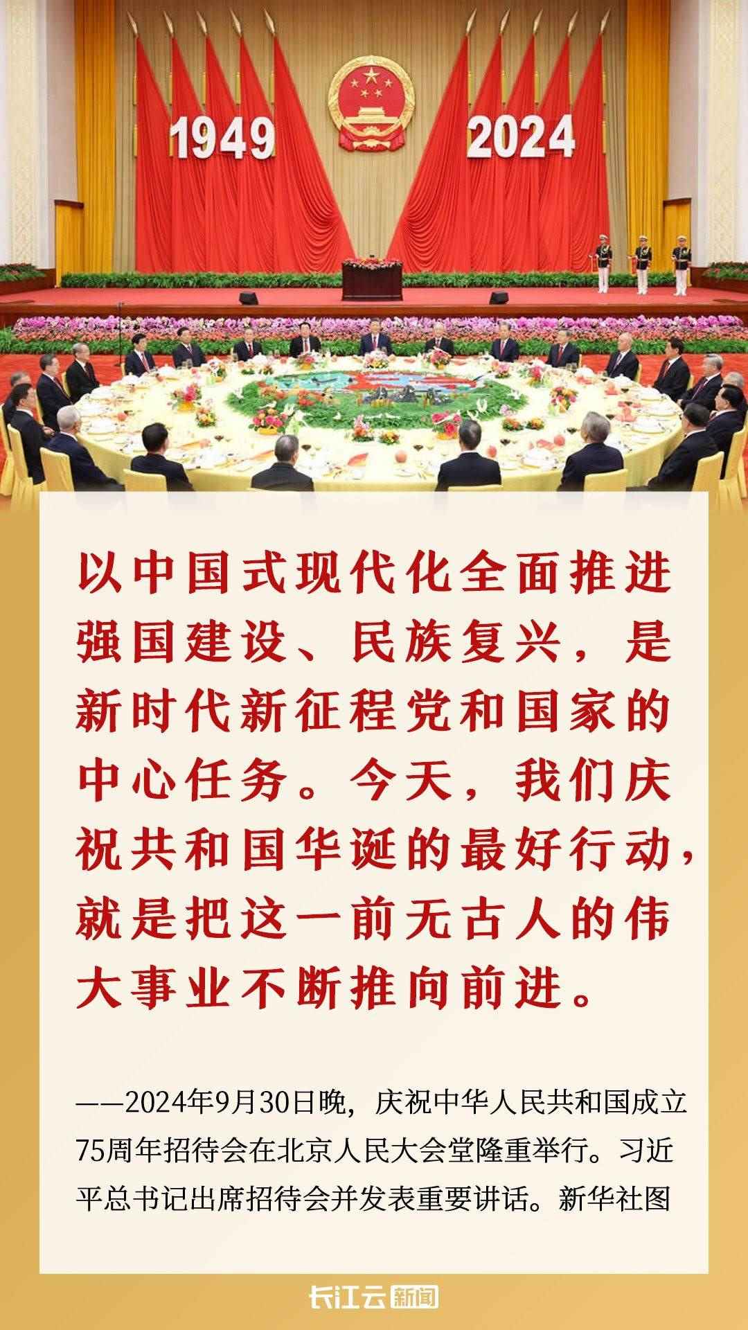 習(xí)近平總書(shū)記在慶祝中華人民共和國(guó)成立75周年招待會(huì)上講話(huà)時(shí)指出,“以中國(guó)式現(xiàn)代化全面推進(jìn)強(qiáng)國(guó)建設(shè)、民族復(fù)興,是新時(shí)代新征程黨和國(guó)家的中心任務(wù)。今天,我們慶祝共和國(guó)華誕的最好行動(dòng),就是把這一前無(wú)古人的偉大事業(yè)不斷推向前進(jìn)”。