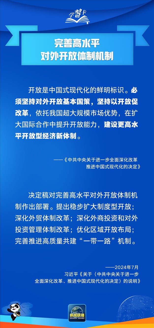 今年7月,黨的二十屆三中全會審議通過《中共中央關(guān)于進一步全面深化改革 推進中國式現(xiàn)代化的決定》。這份綱領(lǐng)性文件明確提出,“完善高水平對外開放體制機制”。