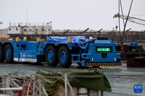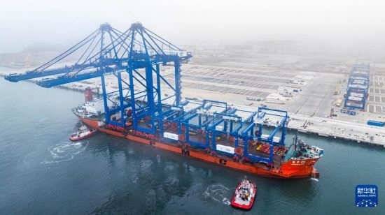 6月27日,岸邊集裝箱起重機(jī)和軌道吊運(yùn)抵秘魯錢(qián)凱港。 新華社發(fā)(上海振華重工供圖)