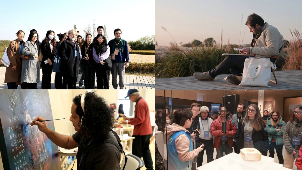 首屆良渚論壇成果豐碩,來自世界各地的300多位中外嘉賓齊聚一堂,開啟了一場世界級的文明對話。83個國家的84名藝術(shù)家留下150余幅作品,展示著人類文明百花園的姹紫嫣紅。