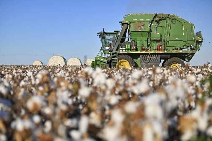 在全國最大產(chǎn)棉區(qū)新疆,農(nóng)民建起大面積高標(biāo)準(zhǔn)農(nóng)田。隨著植保無人機(jī)、大型采棉機(jī)、殘膜回收機(jī)等廣泛應(yīng)用,新疆棉花耕種基本實(shí)現(xiàn)全程機(jī)械化,棉農(nóng)甚至能幫助國際采棉機(jī)巨頭改進(jìn)機(jī)器工藝。
