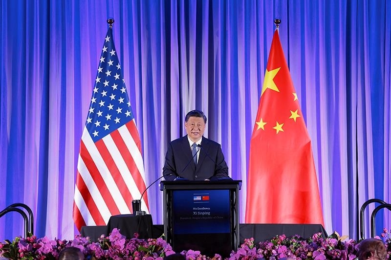 △當(dāng)?shù)貢r(shí)間2023年11月15日,習(xí)近平主席在美國舊金山出席美國友好團(tuán)體聯(lián)合舉行的歡迎宴會。