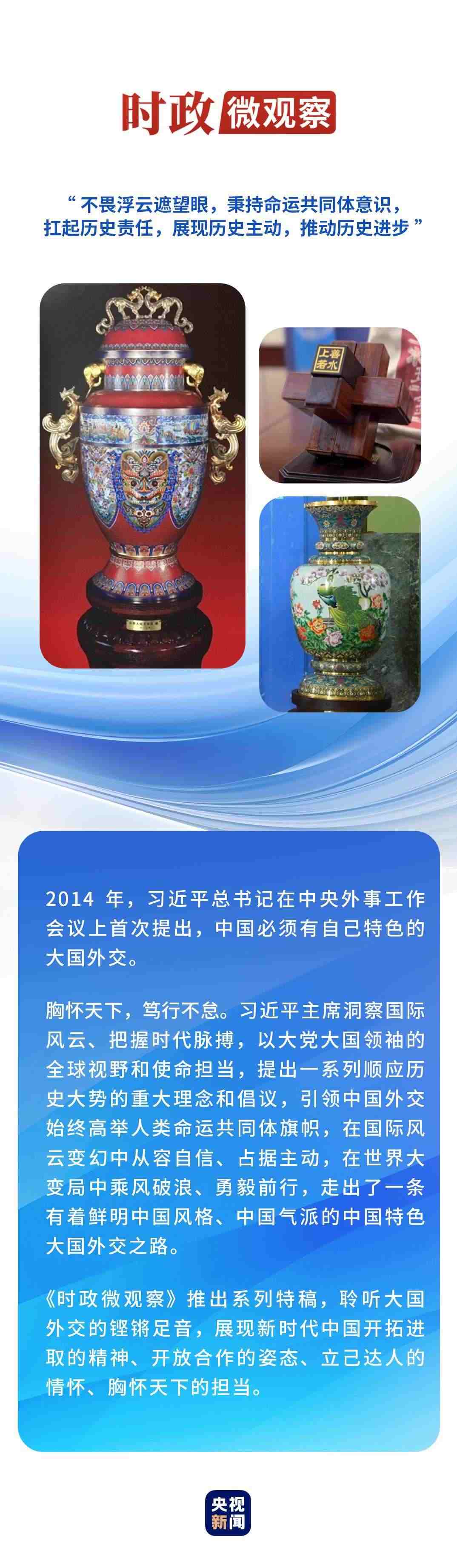 縱觀“和平尊”與“盛世歡歌”,兩件國禮一脈相承。其異曲同工之妙在于都深深蘊(yùn)含著中國對和平發(fā)展的向往與追求,同時(shí)也展示出中國堅(jiān)持獨(dú)立自主和平外交政策,以及攜手同心打造人類命運(yùn)共同體的心愿。
