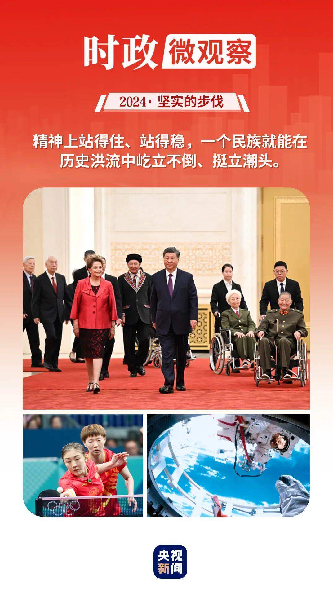 回望2024年,黨的二十屆三中全會標(biāo)記下改革開放進(jìn)程又一重要歷史性時刻;我們熱烈慶祝中華人民共和國成立75周年 、澳門回歸祖國25周年,匯聚砥礪前行的強(qiáng)大力量;中國體育代表團(tuán)取得夏季奧運會境外參賽最好成績,生動詮釋了新時代中國精神;太空遨游、智能迭代、長橋飛渡、巨輪啟航,中國的創(chuàng)新動力、發(fā)展活力勃發(fā)奔涌……中國人民更加自信自強(qiáng),奮斗精神更加昂揚(yáng)。