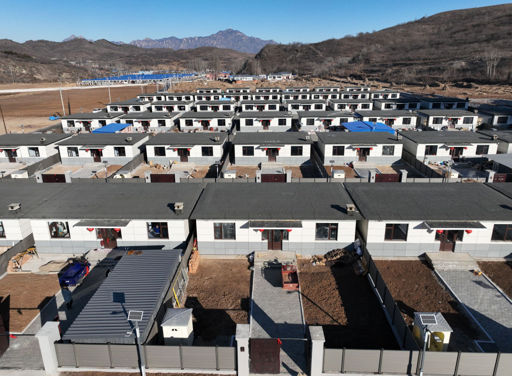 這是遼寧省葫蘆島市建昌縣黑山科鄉(xiāng)楊樹(shù)底下村的集中安置重建住房(2024年12月17日攝,無(wú)人機(jī)照片)。新華社記者 李鋼 攝