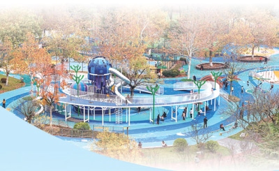 山東榮成市桑干河植物園內(nèi)一處“口袋公園”,市民在游玩、健身。