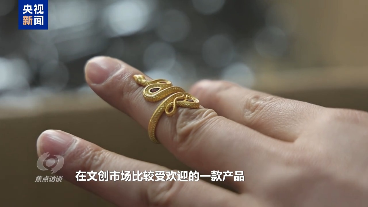 義烏某飾品公司總經(jīng)理 吳昊:這個是我們給國家博物館做的一款新年生肖款,你看看,這個是一款戒指,就適合當下年輕人,在文創(chuàng)市場比較受歡迎的一款產(chǎn)品。
