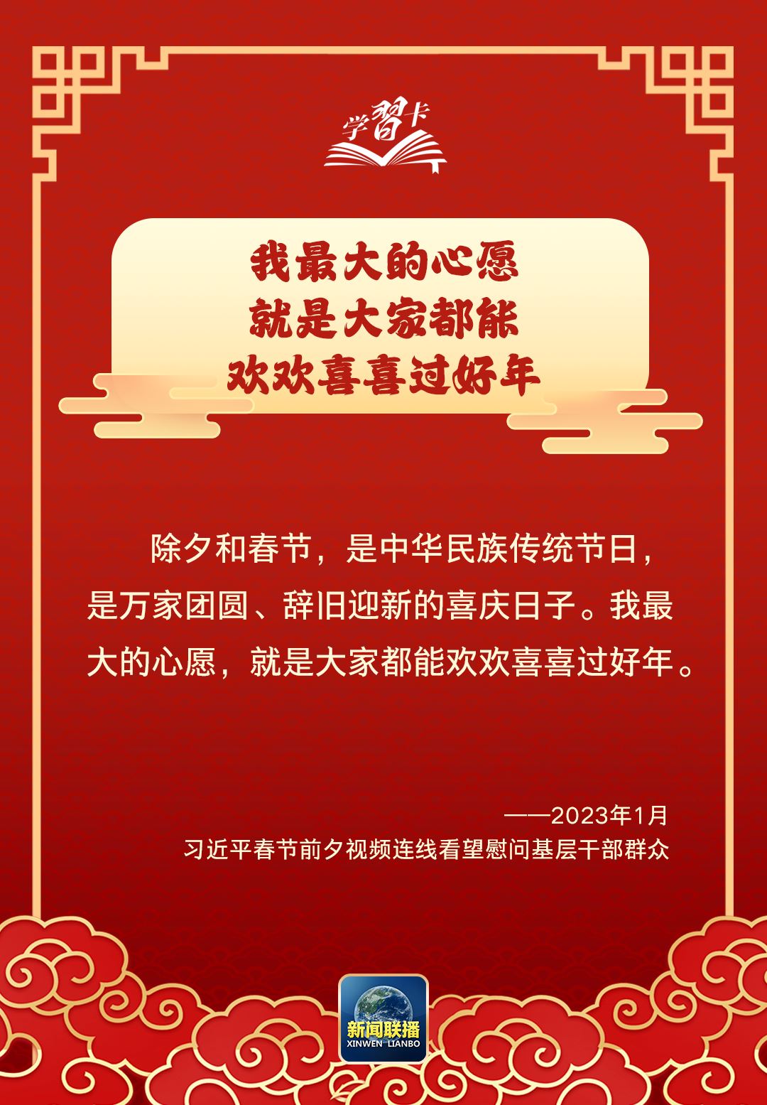 習(xí)近平總書(shū)記曾說(shuō):“我最大的心愿,就是大家都能歡歡喜喜過(guò)好年。”在這辭舊迎新、萬(wàn)家團(tuán)圓之際,讓我們聆聽(tīng)總書(shū)記的暖心話(huà)語(yǔ),一起學(xué)習(xí)↓