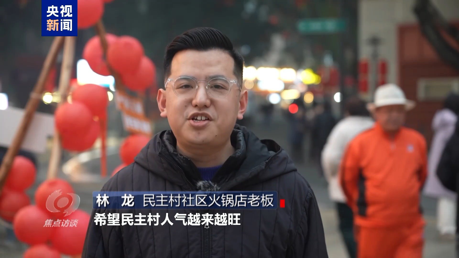 民主村社區(qū)火鍋店老板 林龍:希望民主村人氣越來(lái)越旺,我們火鍋店生意越來(lái)越好,大家都多賺票子!