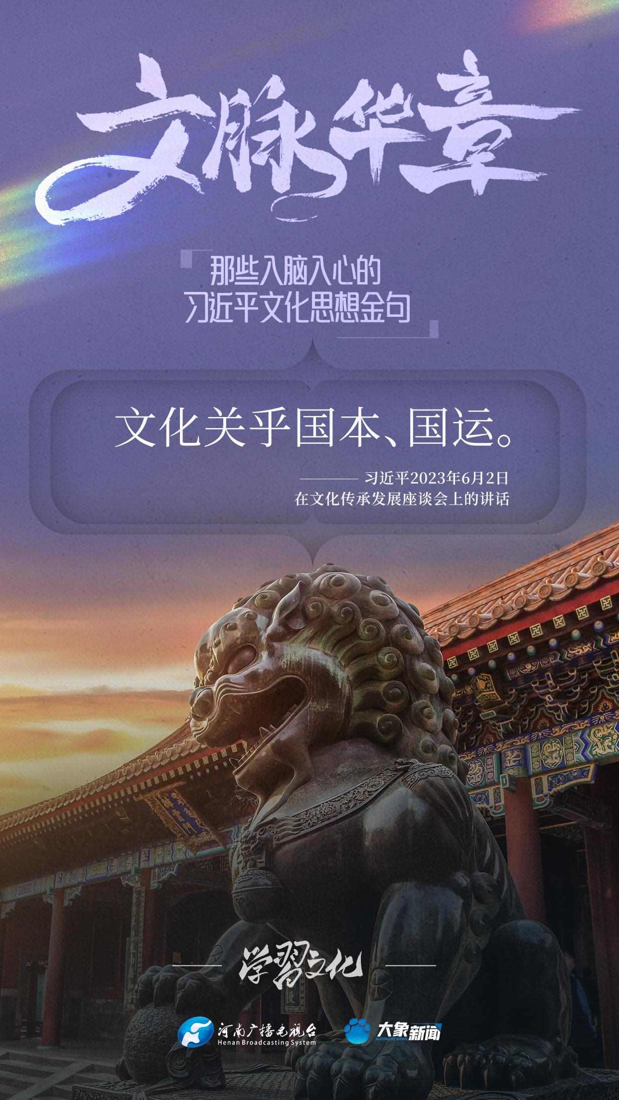 大象新聞將持續(xù)梳理,推出系列策劃《那些入腦入心的習(xí)近平文化思想金句》,邀您一起認(rèn)真品讀。今天推出《文化是一個國家、一個民族的靈魂》。