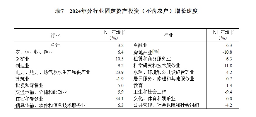 [41]由于投資統(tǒng)計制度方法改革、第五次全國經濟普查數據修訂、統(tǒng)計執(zhí)法檢查等因素,2024年固定資產投資相關指標增速按可比口徑計算。