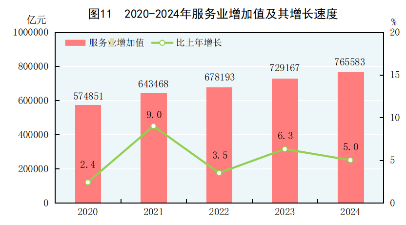 [14]規(guī)模以上服務業(yè)統(tǒng)計范圍包括:年營業(yè)收入2000萬元及以上的交通運輸、倉儲和郵政業(yè),信息傳輸、軟件和信息技術服務業(yè),水利、環(huán)境和公共設施管理業(yè),衛(wèi)生行業(yè)法人單位;年營業(yè)收入1000萬元及以上的房地產業(yè)(不含房地產開發(fā)經營),租賃和商務服務業(yè),科學研究和技術服務業(yè),教育行業(yè)法人單位;以及年營業(yè)收入500萬元及以上的居民服務、修理和其他服務業(yè),文化、體育和娛樂業(yè),社會工作行業(yè)法人單位。2024年規(guī)模以上服務業(yè)企業(yè)財務指標增速按可比口徑計算。