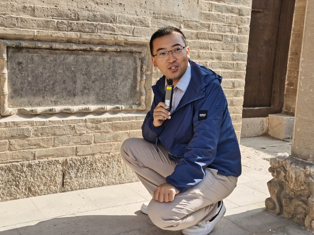 從“古建粉”到從業(yè)者,“80后”楊杰用自己的創(chuàng)業(yè)經(jīng)歷,展現(xiàn)出傳統(tǒng)文化在新時(shí)代的實(shí)踐可能。他創(chuàng)立的晉行記研學(xué)中心,聘請(qǐng)專業(yè)人士深入講解,為喜愛古建的游客提供“沉浸式”研學(xué)體驗(yàn)。這是2023年5月20日,楊杰帶領(lǐng)游客在山西長(zhǎng)治參觀淳化寺古跡。