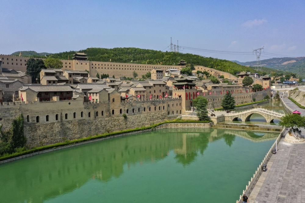2024年7月17日,游客在太原古縣城游覽(無(wú)人機(jī)照片)。
