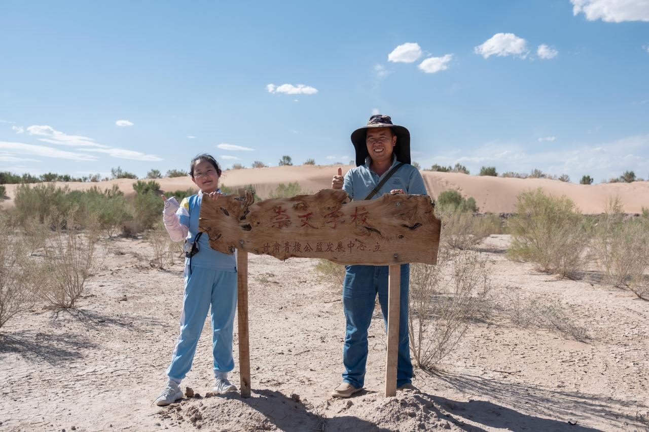 杭州崇文實(shí)驗(yàn)學(xué)校六年級(jí)學(xué)生馬欣瑜,在假期實(shí)現(xiàn)了期盼已久的旅行——到甘肅,親眼看看那片由他們共同捐贈(zèng)的“崇文林”。