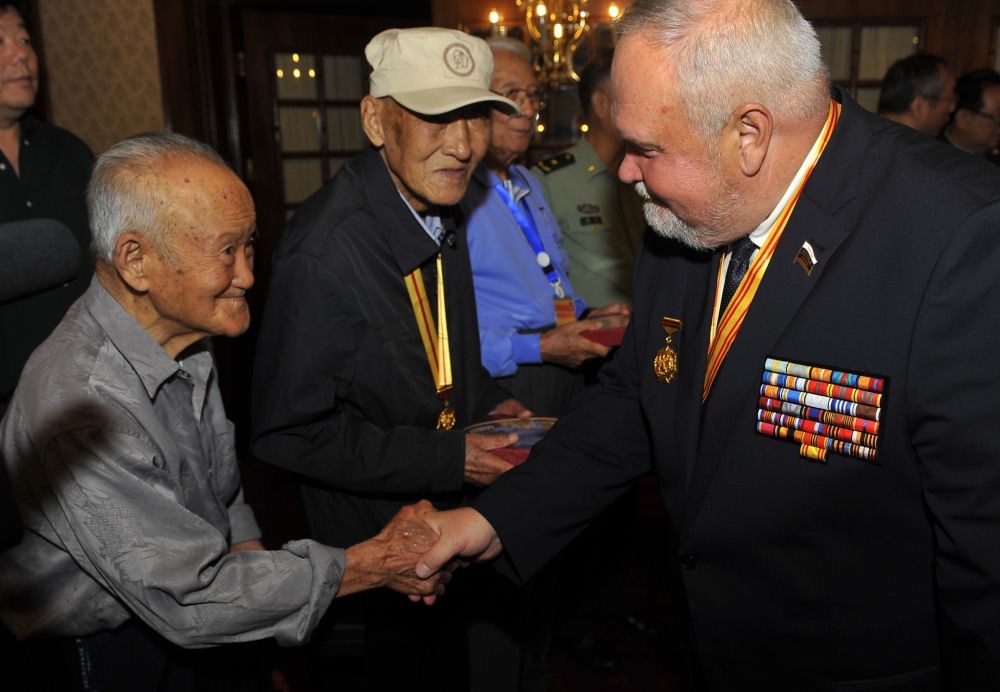 現(xiàn)年65歲的尼古拉,從小在外祖父那里聽(tīng)到很多關(guān)于中國(guó)的故事。多年來(lái),他一直致力于俄中友好事業(yè),現(xiàn)任俄中友協(xié)副主席。在他心中,有一枚勛章意義重大。2015年5月,習(xí)近平主席訪問(wèn)俄羅斯期間,會(huì)見(jiàn)了俄羅斯老戰(zhàn)士代表,并頒發(fā)了紀(jì)念獎(jiǎng)?wù)?。尼古拉也在其中?/p>
