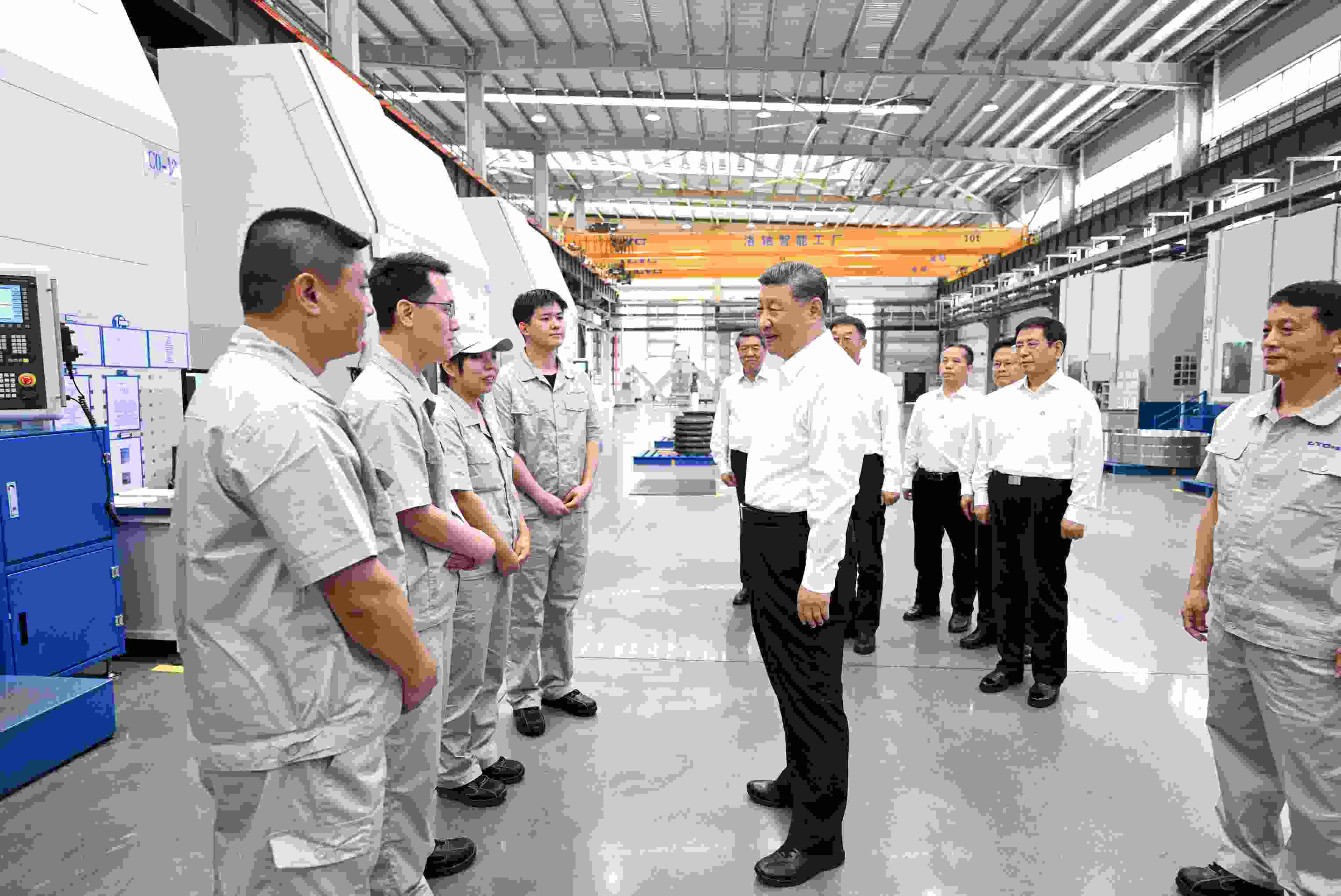 △5月19日,習(xí)近平總書記在河南洛陽軸承集團(tuán)股份有限公司智能工廠考察時,同企業(yè)職工親切交流。