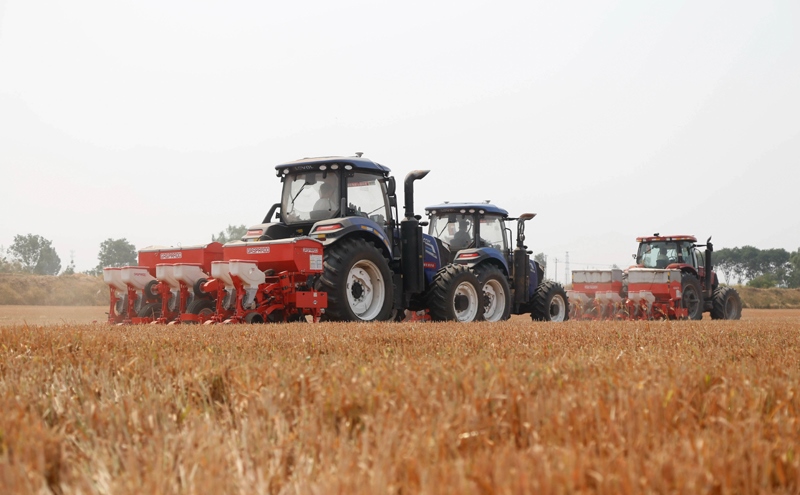 6月13日,在河北省邢臺市南和區(qū)史召鄉(xiāng)北高五村,農(nóng)民駕駛農(nóng)機(jī)播種玉米。