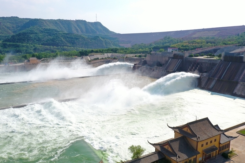 6月23日,游客在小浪底水利樞紐工程出水口觀看調(diào)水調(diào)沙。