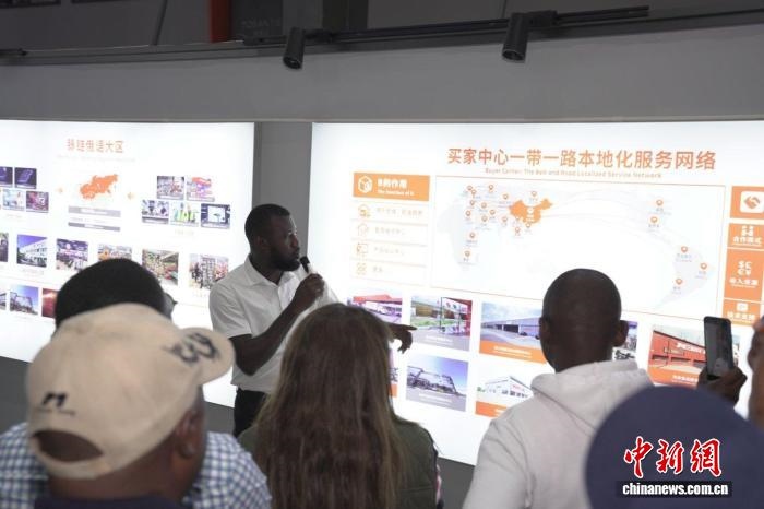 現(xiàn)場,非洲籍工作人員白小龍為代表團講解,在他看來,這一模式有效地幫助商家整合信息、鏈接價值,“既能助中國制造走出去,也能幫非洲企業(yè)精準對接所需產(chǎn)品與服務。”