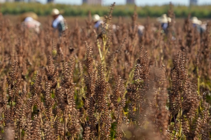 9月23日,黑龍江省佳木斯市樺南縣舉辦慶祝中國農民豐收節(jié)活動,工作人員進行紫蘇收獲展示。