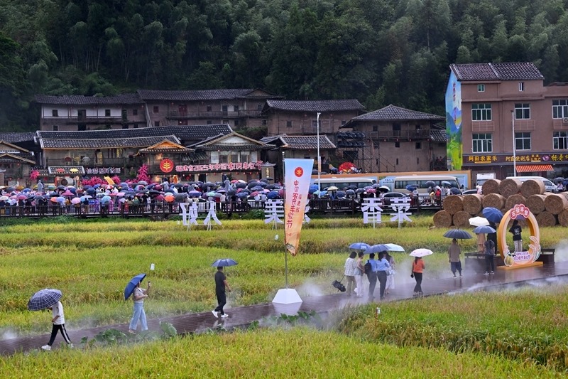 9月23日,游客在福建省2025年中國農民豐收節(jié)主會場活動舉辦地莆田市仙游縣菜溪鄉(xiāng)象星村參觀。
