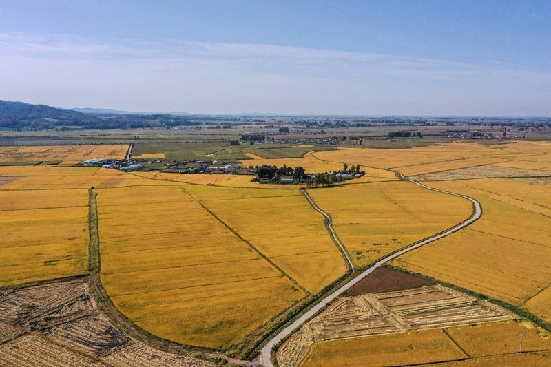 這是9月23日在吉林省吉林市永吉縣岔路河鎮(zhèn)拍攝的農田(無人機照片)。