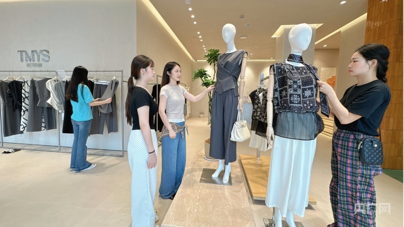 市民在“天門衣尚”品牌館內(nèi)挑選衣服(央廣網(wǎng)發(fā) 天門市委宣傳部供圖)