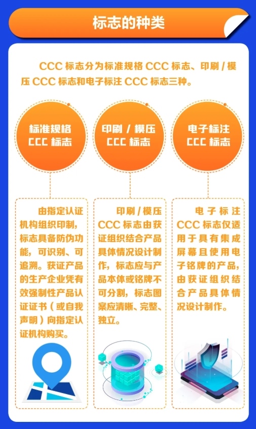 這份解讀明確,CCC標志分為標準規(guī)格CCC標志、印刷/模壓CCC標志和電子標注CCC標志三種。其中的標準規(guī)格CCC標志由指定認證機構組織印制,標志具備防偽功能,可識別、可追溯。獲證產(chǎn)品的生產(chǎn)企業(yè)憑有效強制性產(chǎn)品認證證書(或自我聲明)向指定認證機構購買。