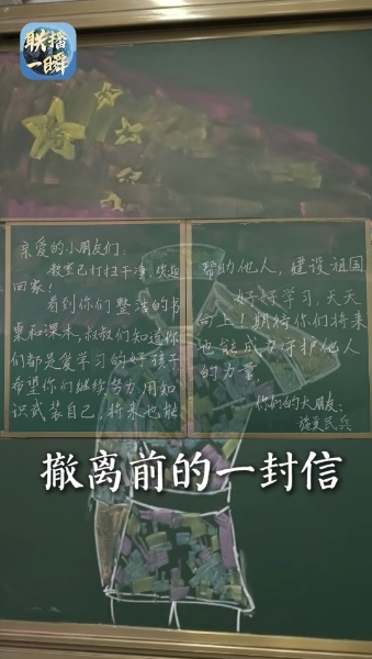 “期待你們將來(lái)也能成為守護(hù)他人的力量!”7月3日,貴州榕江縣古州鎮(zhèn)第六小學(xué)的黑板上,救災(zāi)的民兵戰(zhàn)士為小朋友們寫(xiě)下了一封信。大朋友與小朋友之間,是溫情與守護(hù)的傳遞。