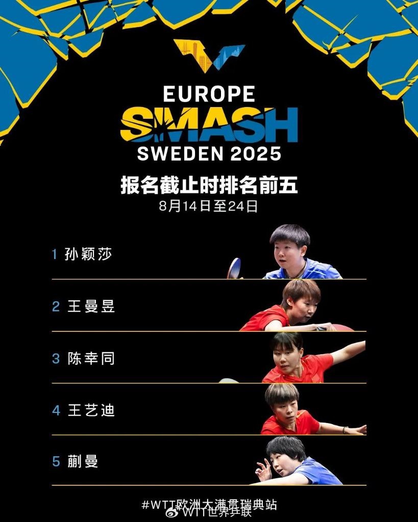 新華社北京7月6日電 世界乒乓球職業(yè)大聯(lián)盟(WTT)歐洲大滿貫賽瑞典站將于8月14日至24日在馬爾默舉行。首批參賽名單6日公布,男、女單打世界排名第一的國(guó)乒隊(duì)員林詩(shī)棟、孫穎莎在列。
