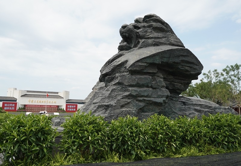 這是7月7日在中國(guó)人民抗日戰(zhàn)爭(zhēng)紀(jì)念館前拍攝的醒獅雕塑。