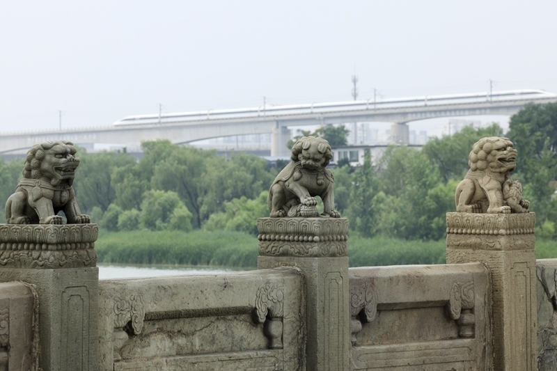 這是7月4日拍攝的盧溝橋上的石獅子。