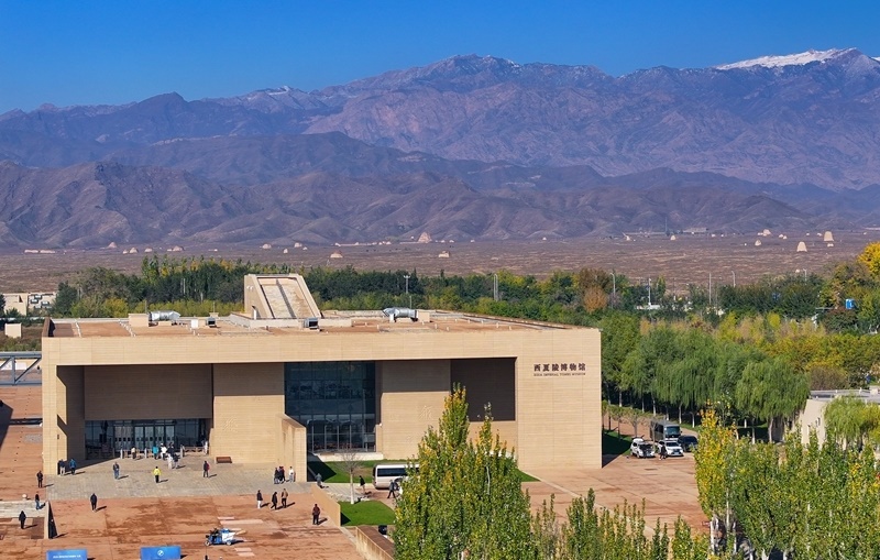 2024年10月10日在寧夏銀川拍攝的西夏陵博物館(無人機照片)。