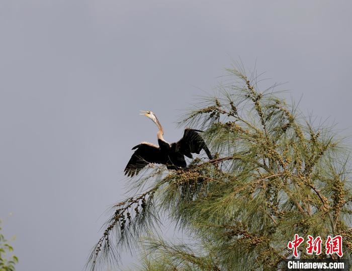 中新網(wǎng)海南昌江7月13日電(陳英清)近日,海南昌江海尾國家濕地公園記錄到1只黑腹蛇鵜。經(jīng)海南省鳥類記錄中心專家確認,這是海南省首次記錄到該鳥種。黑腹蛇鵜已被《世界自然保護聯(lián)盟瀕危物種紅色名錄》(IUCN)列為近危(NT)物種。
