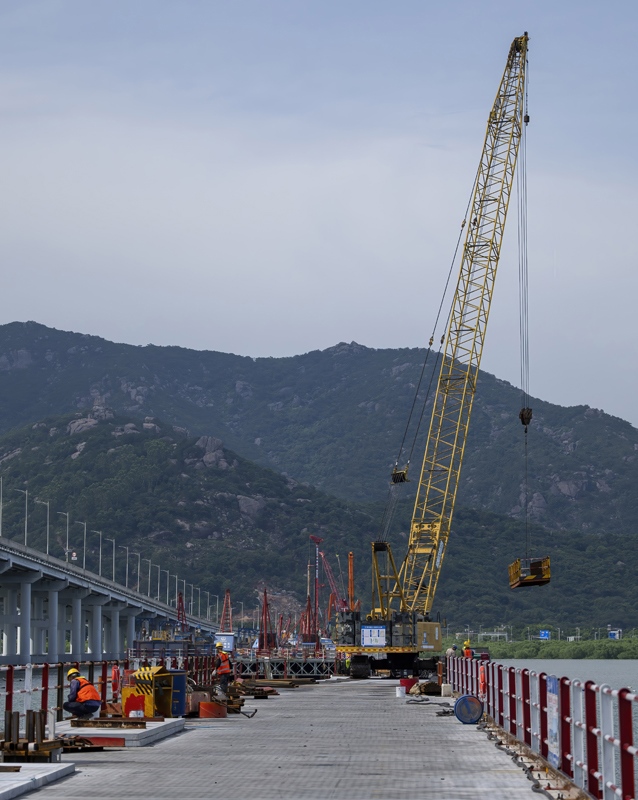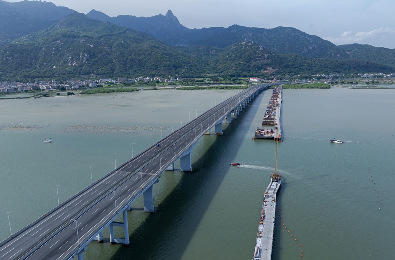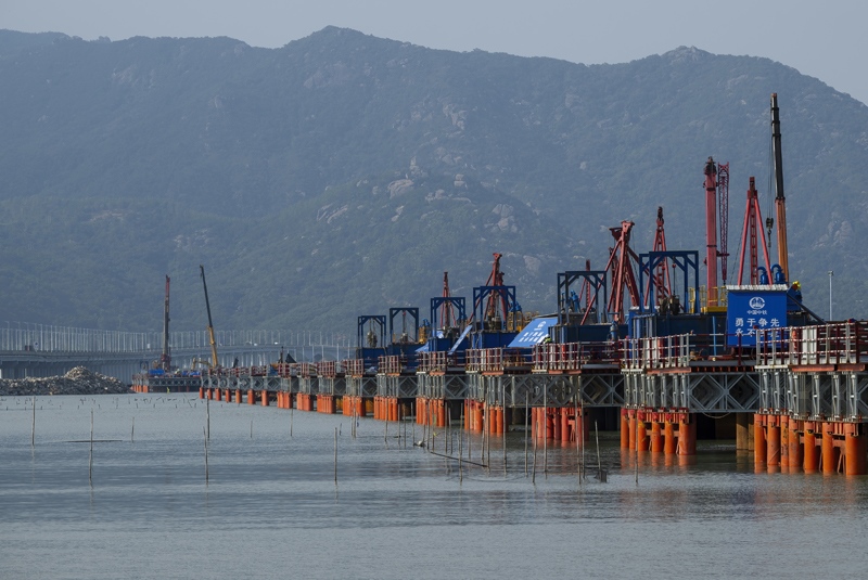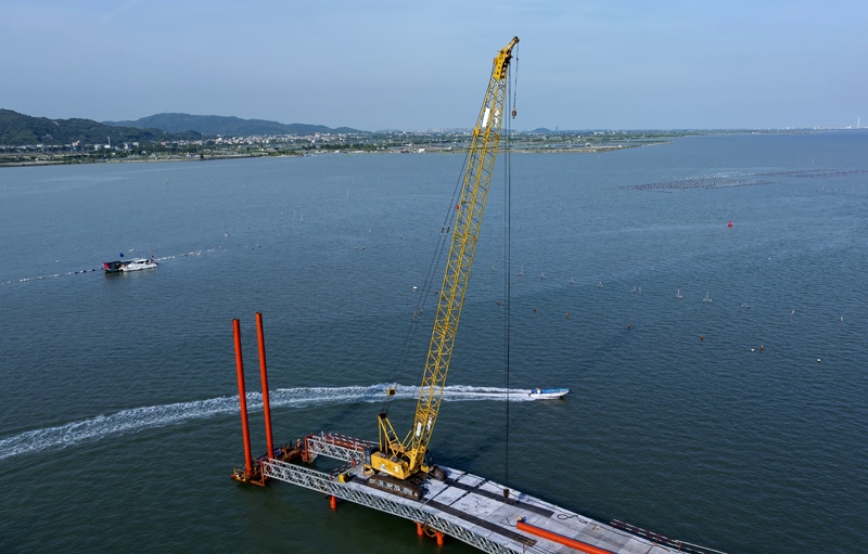 這是漳江灣跨海特大橋主棧橋(7月16日攝)。