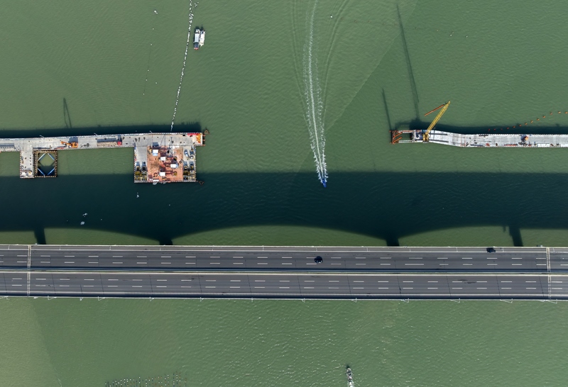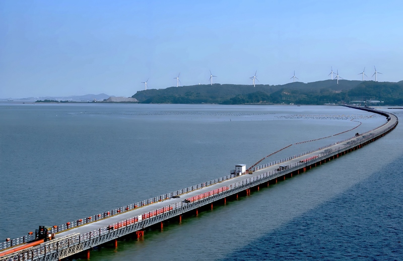 7月18日,新建漳汕高鐵全線控制性工程漳江灣跨海特大橋主棧橋完工,為后續(xù)海上各工作面施工奠定基礎。漳汕高鐵漳江灣跨海特大橋橋梁全長5.8公里,海域部分橋梁長5公里。目前,大橋主體結構施工正在有序推進。