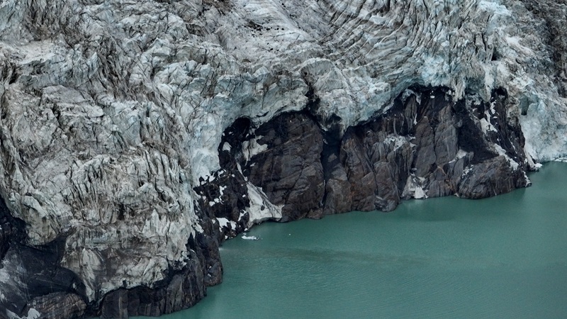 7月19日拍攝的薩普冰川冰舌末端(無人機(jī)照片)。