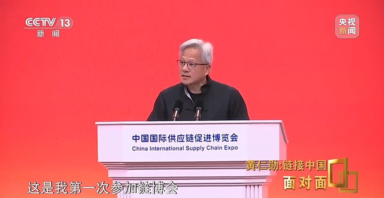 鏈博會開幕式上,黃仁勛沒有穿他那件標(biāo)志性的皮衣,而是身著唐裝,并用中文開場演講。