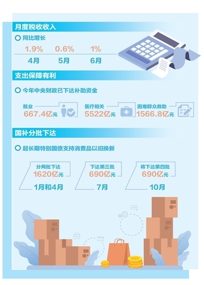 收入回升,支出有力,為落實更加積極的財政政策提供堅實資金保障?!皣@提振消費、穩(wěn)就業(yè)穩(wěn)經濟等重點領域,財政部門加強財政政策供給和資金撥付管理,確保盡早發(fā)揮政策效果?!必斦款A算司一級巡視員、政府債務研究和評估中心主任李大偉說。