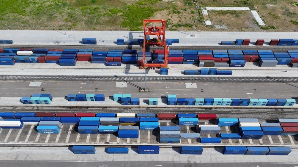 口岸站整齊擺放的集裝箱。(中國(guó)鐵路哈爾濱局集團(tuán)有限公司供圖)