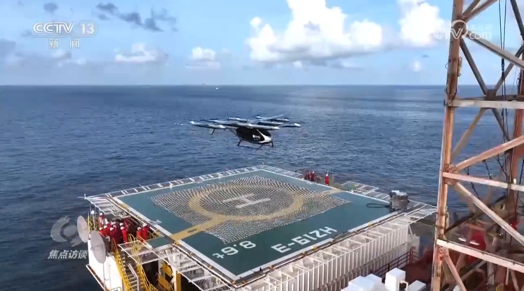 這天,一架兩噸重的電動(dòng)垂直起降航空器搭載著水果和藥品,從深圳市區(qū)起飛,歷經(jīng)58分鐘的跨海域飛行,抵達(dá)距深圳海岸線(xiàn)150公里的海上油氣平臺(tái),為平臺(tái)工作人員送去物資。