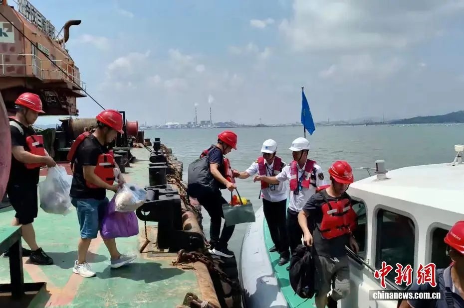 8月12日,福建海事局工作人員動員海上作業(yè)船只工作人員離船避風。中新社發(fā) 福建海事局 供圖