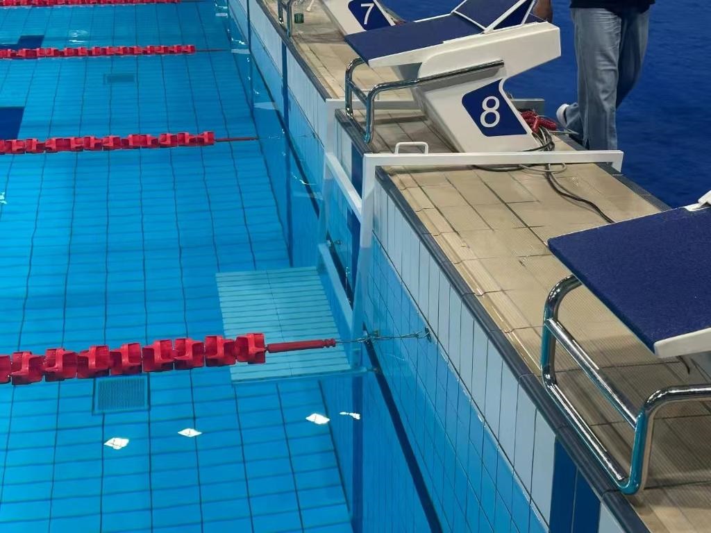 為了幫助救生和自由潛水比賽精準計時,成都體育學院三岔湖校區(qū)游泳館安裝了智能游泳出發(fā)臺。場館相關負責人王金陽介紹說,高級別賽事對泳池出發(fā)臺要求很高,要做到計時非常精確,因為哪怕0.1秒的誤差也可能對比賽結(jié)果產(chǎn)生影響,為此他們專門在泳池邊裝上了觸控板和芯片等智能計時設備,以確保達到比賽要求。