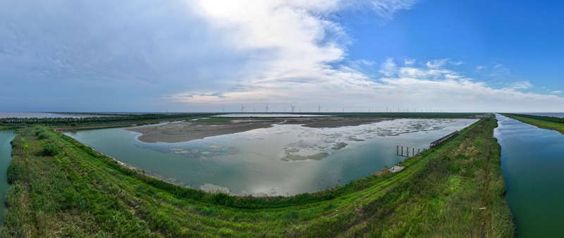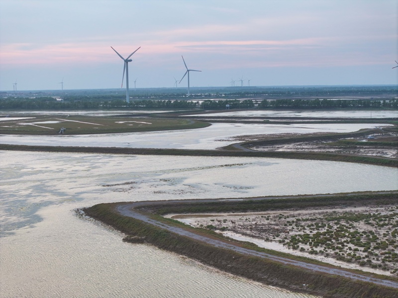 江蘇省鹽城市東臺(tái)市條子泥濕地區(qū)域總面積129萬(wàn)畝。2019年,作為中國(guó)黃(渤)海候鳥(niǎo)棲息地(第一期)重要組成部分被列入世界遺產(chǎn)名錄。近年來(lái),條子泥濕地秉承“基于自然的解決方案”理念,開(kāi)展了川水灣海岸帶生態(tài)保護(hù)項(xiàng)目,并在東臺(tái)海堤西側(cè)專(zhuān)門(mén)辟出720畝魚(yú)塘,打造了國(guó)內(nèi)第一塊固定高潮位棲息地。生態(tài)保護(hù)修復(fù)工程的實(shí)施使條子泥一些珍稀物種種群數(shù)量屢創(chuàng)新高,大批的水鳥(niǎo)、成群的麋鹿等野生動(dòng)物在此“落戶(hù)”,濕地修復(fù)初顯成效。