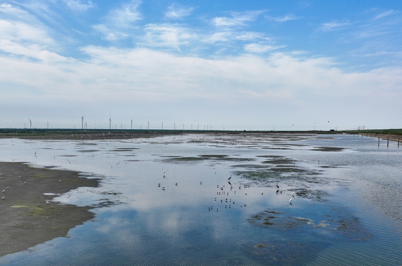 8月25日拍攝的東臺(tái)條子泥濕地“720”高潮位棲息地(無(wú)人機(jī)照片)。