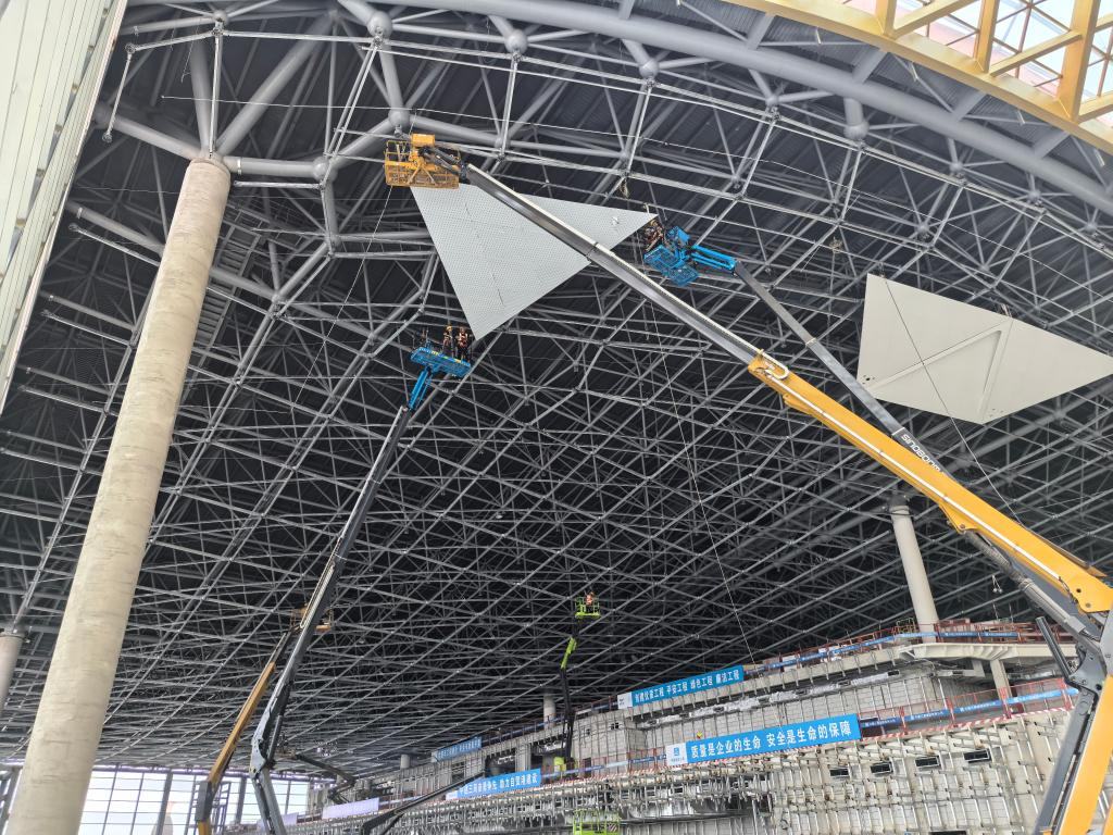 據(jù)項目常務(wù)副經(jīng)理陳豪介紹,T3航站樓目前正處于室內(nèi)裝飾裝修階段,針對總面積約2.2萬平方米的室內(nèi)高漫反射蜂窩鋁板吊頂拼裝難題,中建三局技術(shù)團隊通過三維激光掃描技術(shù),對航站樓內(nèi)部的屋蓋網(wǎng)架結(jié)構(gòu)進行精準點云掃描,掃描的現(xiàn)場模型和數(shù)據(jù)將上傳到云端進行合模分析,并通過中建三局自主研發(fā)的云廷系統(tǒng),快速生成航站樓吊頂裝飾所需的各類模塊數(shù)據(jù),一塊塊蜂窩鋁板吊頂像拼圖一樣精準嵌合,施工誤差嚴格控制在3毫米內(nèi)。